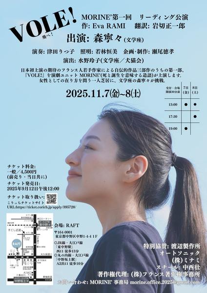 MORINE’『VOLE!』の予約ページになります。 予約完了後すぐに、自動返信メールが送信されます。 URL付きメールの受信を拒否されている方は、設定を解除してください。 ticket@corich.jpよりメールをお送りしますので、受信許可設定をお願いいたします。