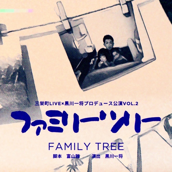三栄町LIVE × 黒川一将プロデュースvol.2 東京公演 『ファミリーツリー』 脚本:富山雅/演出:黒川一将 東京公演 公演日:2025年10月29日(水)~ 11月9日(日)全16ステージ 会場:三栄町LIVE STAGE [あらすじ] わたしの父が死にました。 わたしたち姉妹は父の彼女と住むことになりました。 父の彼女は中年のおじさんでした。 父子家庭の姉妹が引き取られたのはスナックを経営をする父親の「彼女」を名乗る 51 歳中 年おじさん。 受け入れる姉と、反発する妹。 父のお葬式から 3 人の家族?生活が始まった。 【東京公演キャスト】 ABキャスト 永瀬がーな 茎田優平 楠枝針 水野捺美 Aキャスト 石田夢 えま 和泉ゆきえ※ 吉村泠 中澤佑真 灯馨珠凪 詩萌 Bキャスト 三瓶暖斗 おたべ壮太 岩渕聖良 曽我あいり※ 長谷川智南 鈴木琉生 玉留汐 【東京公演日時】 10月 29日(水)19:30 A 30日(木)19:30 B 31日(金)14:00 A 11月 1日(土)14:00 B/18:00 A 2日(日)13:00 A/17:00 B★配信日 3日(月)13:00 B/17:00 A※ 4日(火)19:30 B 5日(水)休演日 6日(木)19:30 A 7日(金)14:00 B 8日(土)14:00 A/18:00 B 9日(日)13:00 B※/17:00 A ◉受付開始・開場は開演の30分前。 ★配信日 ※【和泉ゆきえ】は11月3日(月)17:00回に出演いたしません。 代わりに【曽我あいり】が出演いたします。 ※【曽我あいり】は11月9日(日)13:00回に出演いたしません。 代わりに【和泉ゆきえ】が出演いたします。 【東京公演会場】 三栄町LIVE STAGE 住所:東京都新宿区四谷三栄町10-12 ボナフラワービルB1階 アクセス:東京メトロ丸の内線「四谷三丁目」4 番出口より徒歩5 分 JR 中央線・総武線「四ツ谷」より徒歩10 分 都営新宿線「曙橋」より徒歩7分 【東京公演チケット】 前売り自由席3500円(当日4000円) ★配信チケット3500円[生配信、アーカイブ配信で2週間視聴可能] ⭐未就学児童のご入場はお断りします。 【STAFF】 宣伝美術:柳田ひかり キャスティング:黒川一将/三栄町LIVE 制作:松尾智久 制作指揮:小畑幸英 プロデューサー:黒川一将 企画・製作:三栄町LIVE 協力:A-Light/ApRicoT/Office NOVAI entertainment (五十音順・順不同) 【お問い合わせ】 三栄町LIVE info@3eicholive.com 三栄町LIVE HP http://3eicholive.com/
